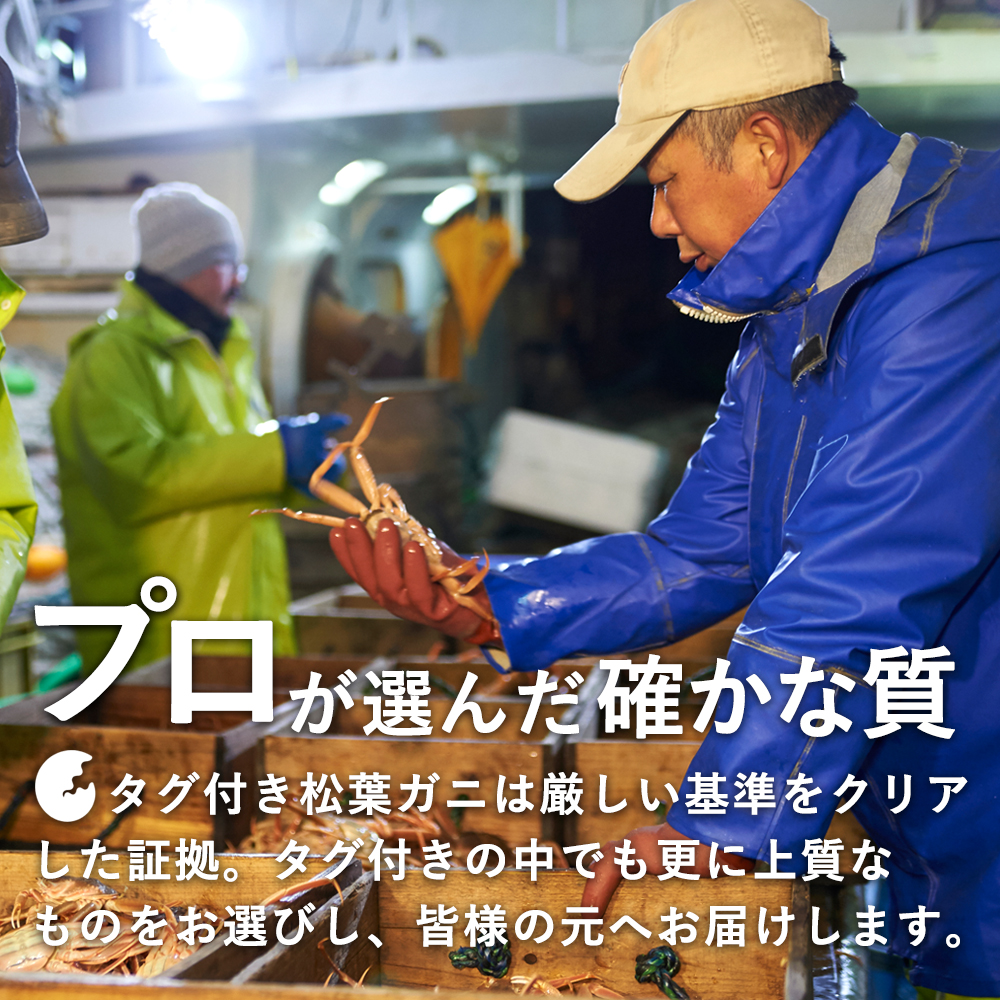 足の太さ、体の重さ、甲羅の固さ、プロが選ぶ本物の松葉ガニ。鳥取県漁業協同組合独自の管理技術に基づいた商品だから安心・安全。日本海で獲れた本物の蟹をお届けします。